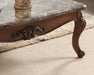 Cosmos Furniture's Anne traditional style End Table in cherry finish wood accentuates the entire collection's elegant style. The decorative carving on the edge of this End Table along with its decorative legs highlight the overall look of this table. Marble top compliments the Coffee Table. Matching Coffee Table sold separately. Matching other living room pieces are sold separately.