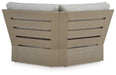 This outdoor sectional is just what you need to get your outdoor party started. Though it looks remarkably like wood, its durable frame is perfectly suited for alfresco living. Cushions on the loveseats and chair are wrapped in high-performance Nuvella+™ fabric, making them as plush as they are practical.
