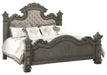 Cosmos Furniture's Silvy transitional style Queen Bed in gray finish wood is the perfect accent to create the royal statement for your bedroom. This 4-post bed crafted with intricate detailed carvings and a gorgeous lightly brush kissed gold on salvaged natural wood finish accentuates this special bed. The hand applied brush finish enhances the beauty of the detailed woodwork carvings. Exceptionally beautiful bed features button tufted upholstery with nail head trim on the headboard. Elaborated detailing on this bed will surely bring true splendor into your home. Crafted with a transitional it is an ideal for someone looking for a contemporary traditional look. This fashionable bed will fuse with the surrounding decor and transform a room from ordinary into something interesting and sophisticated. Matching Nightstands and other bedroom set pieces are sold separately to complete the entire look of your excellent taste.