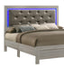 Cosmos Furniture's Yasmine White modern style Queen Bed in gray finish wood brings simplicity to life with straight lines. This bed has contrasting darker colored upholstered headboard and LED lights. The realistic basic glam lit headboard features crystal studded button tufting on velour upholstery to add elegance to any bedroom. The low-profile footboard make this bed more functional which will surely bring true splendor into your home. Matching Nightstand and more bedroom pieces are sold separately to complete the entire look of your excellent taste.