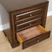 Brandt Brown Cherry Night Stand, 26"W X 17"D X 28"H, 57.2lbs. This nightstand offers two solutions at once. It is visually stunning, and has unrivaled storage space to keep your fabulous new room clutter free. With three deep drawers, this nightstand can hold clothes, jewelry, and anything else necessary. The d eep chestnut finish and antique hardware of this piece gives it a subtle elegance. An underlight nightlight gives you enough light to see without waking anyone up. Features: Transitional Brown Cherry Wood, Wood Veneers, Others Storage Bed Wood Inlay Design Felt-lined Top Drawers English Dovetail Drawer Construction Internal USB/Power Outlet Nightlight under Nightstand Insect Deterring Cedar Drawer