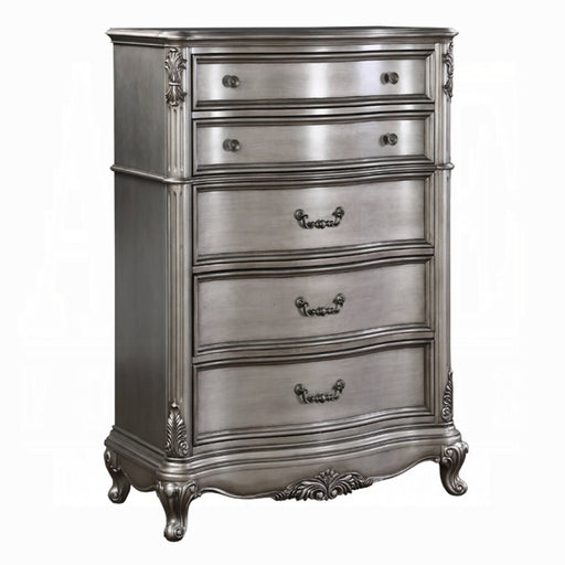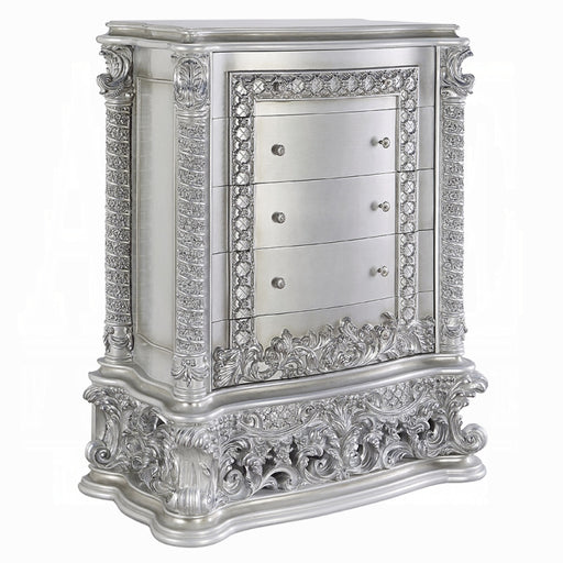 The epitome of fashion-forward design, this chest of drawers is a beautiful blend of style and luxury. Shiny chrome-tone accents, a pearlized finis...