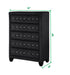 Enhance your bedroom organization with the 5-Drawer Chest. Featuring five spacious drawers with crystal accents, this chest offers both style and utility. Its modern design and wood construction ensure it's a lasting addition to your bedroom. Five roomy drawers for organized clothing storage. Crystal accents on drawer knobs for a chic look. Modern and functional addition to your bedroom. Made from wood to withstand daily use.