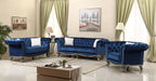 Mia Transitional Style Navy Sofa with Silver Finish
