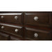 With smooth carved panels, this dresser will add a chic upgrade to your bedroom dcor. A dark bold finish sets off the stylish design of the contrasting metal drawer pull handles. Felt-lined top drawers provide safe haven for more delicate possessions, hidden behind the bold paneling designs of each drawer front.