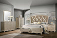 Cosmos Furniture's Faisal transitional style Nightstand has metallic beige finished wood which is an impeccable example of truly memorable luxurious transitional design. The deep Three (3) drawers Nightstand has dovetail construction with full extension glides. The wood box drawers have knobs with crystal finished accented hardware to enhance the sophisticated look. The bottom drawers are dust proof. The Nightstand has beautiful designed intricated carving on all two (2) drawers to match the bedroom theme. Matching with the Bed and more bedroom pieces are sold separately to complete the entire look of your excellent taste.