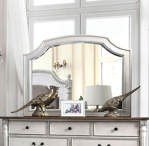 Update your bedroom with elegant styles portrayed by this beautiful bedroom set. This silver gray mirror is part of this sophisticated collection.