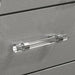 MADDIE Night Stand, Silver, 29 1/2"W X 17 3/8"D X 27"H, 110lbs. Create a room with this night stand from the Maddie Collection. The acrylic legs and crystal accents bring a glamorous aesthetic. Give into your glitzy side with this opulent night stand.