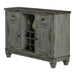 An updated look for the casual country inspired dining space, the Fulbright Collection is a warm and inviting addition to your home. A wire-brushed two-tone gray and coffee finish serves to highlight the solid rubberwood server, lending an updated styling to the traditional look. Behind door storage as well as drawers and open wine rack create ample space to store your tabletop items.