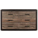 The Miter Collection combines the clean lines of contemporary styling with the look of natural wood grain in this stylish dresser. The dresser’s embossed faux-wood veneer is utilized in both mahogany and ebony to achieve a 2-tone contrasted finish. Antique brass tone hardware provides additional contrast to the printed wood grain.