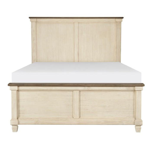 Transitional-rustic styling is expertly achieved in the design of the Weaver Collection. Antique white provides bold contrast to the rosy brown plank-style tops, with pine solids and oak veneer further lending visual texture to the nightstand. Classic framing paired with dark metal knob hardware complete the rustic look.