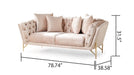 The Loveseat is a chic addition to your living room. Its robust Solid + Manufactured wood frame guarantees durability, while the 100% Polyester Finish Cut Chenille fabric exudes elegance. The gold metal finish on the legs adds a touch of glamour, and the loveseat comes with 4 decorative pillows for an extra layer of style and coziness.