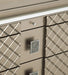 The striking design of the Loudon Collection presents as a bold statement of your glamorous inclinations. The champagne metallic finish of the dresser shimmers with additional sparkle coming in the form of the black glass encrusted drawer pulls, embossed diamond pattern of the mindy veneer, mirrored framing and acrylic feet. The top two drawers of the dresser feature hidden jewelry trays.