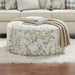 It's everything an Ottoman should be - broad, round, firm and soft - perfect for use in any room. The artful array of pastel-toned leaf imprint images boasts a pleasant contrast. Singular cord welt trim circles the buoyant and comfortable surface, a favorite for casual sitting or leg-resting. Easy portability satisfies a variety of demands and uses.