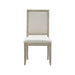 The sophisticated modern styling of the McKewen Collection brings refined design to the elegant space of your dining room. The neutral tone of the side chair’s fabric perfectly complementes the dining table with the oak veneer over poplar solids and gray finish.