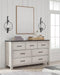 Make a farmhouse-inspired statement with this dresser and mirror set. Beautifully crafted to stand the test of time, the planked effect and clean two-tone finish lend a relaxing vintage feel. Felt-finished top drawers add a touch of luxury for the ultimate tasteful bedroom.