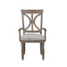 The solid transitional styling of the Cardano Collection creates an impactful design presence in your dining room. Utilizing distinct accent techniques – plank effect, rasping, saw marks – and pairing them with traditional framing and a light finish – brown wood over acacia solids and veneers – creates a collection that is worthy of your dining room. The neutral gray tone of the armchair’s padded fabric seat serves as a perfect complement to the contoured x-back wood framing of the armchair.