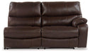 Bring home ultimate comfort with this power reclining sectional. Along with power positioning at the push of a button, its deep seating, plush cushions and pillow top arms ensure plenty of relaxation. The strikingly modern profile is wrapped in decadently soft leather and faux leather upholstery for a luxurious feel. A convenient USB charging port on the power control keeps you connected. Use the sectional's center console to keep drinks within arm's reach and to store remote controls and other necessities.