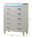 Are you looking to upgrade your bedroom? Well, you have come to the right place. This is the perfect one-of-a-kind bedroom set that can transform your room like no other bedroom set in the market. Glamorous, alluring, and luxurious are a few words to describe this beautiful piece of furniture. This is a perfect apparatus to lift the character and atmosphere of your bedroom. Each piece in this bedroom set is equipped with ambiance enhancing LED lights, and this LED accent offers the perfect highlight even after the lights go out. The crystal pattern under the light gives it more depth. You will find this beautiful crystal-like pattern near all the lights on every case piece. This set comes with Chest. The piece equipped with a significant amount of storage that you will never have to worry about running out of space to store your essentials. The handles on these drawers feature an intertwined ring pattern which is soothing for the eyes. The chest features two handles on each drawer to increase your convenience. That is not all; this bedroom set is made with top-quality solid wood that can last for years. Add glam to any bedroom with this top-selling design. Indulge in the exquisite details while awake and in restful sleep at the end of each day.