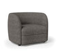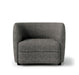 Compact fitted kidney-shaped single cushion, curved arms and backrest, and barely-there wooden legs contribute to this piece's tight fit and ultra comfort. Besides the intriguing shape, the other draw here is the visual impact it brings to any modern space. The boucle fabric features metallic undertones which when paired with a neutral color palette under certain lighting conditions, allow the texture to glitter and shine in the most undeniably chic way.